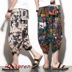 サルエルパンツ メンズ 民族風パンツ サルエルパンツ エスニック柄 メンズ ボトムス ワイドパンツ ロング丈 クロップドパンツ 夏