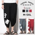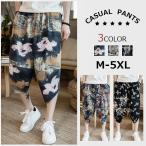 リネンパンツ 民族風パンツ サルエルパンツ エスニック柄 メンズ ボトムス ワイドパンツ 七分丈 クロップドパンツ 大きいサイズ 夏