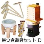 (餅つき道具セットD) 台付き 白御影石臼 煙突付き 末代かまど 羽釜33cm 桧角セイロ9寸3段 大人用キネ3本 子供用キネ1本 麻ふかし布3枚