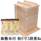 米桧 角セイロ 9寸 三段重ね 餅つき用 角せいろ 27cm 深型 アラスカヒノキ (麻ふかし布66×68cm 3枚付き) 手造り 日本製