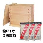 米桧 角セイロ 3段セット(K1001) 身3段重ね 尺一寸(33cm) アラスカヒノキ 角せいろ 手造り (綿ふかし布88×88cm 3枚付き) 日本製 zm