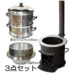 (餅つき道具 徳用3点セット) 末代かまど 3〜5升用 羽釜33cm 長生セイロ(公徳セイロ)33cm2段重ね(フタ1、本体2) (カマド 竈 竃)