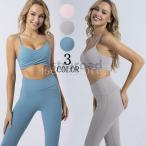 ヨガウェア 上下セット レディース パンツ カップ付き ブラ 2点セットアップ おしゃれ かわいい バックシャン