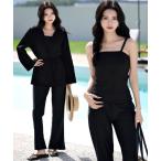 ラッシュガード レディース 2WAYラッシュガード半袖スキッパートップス+ブラトップ+フレアパンツ 3点セット レディース