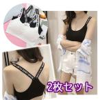 スポーツブラ ジュニア ヨガブラ かわいい ノンワイヤー フィットネスブラ ワイヤーなし パット入り ブラック ホワイト 白黒 2枚セット ナイトブラ スポーツブラジャー スポブラ 揺れない レディース フィットネス ウォーキング シンプル フリーサイズ 無地 2色 夏