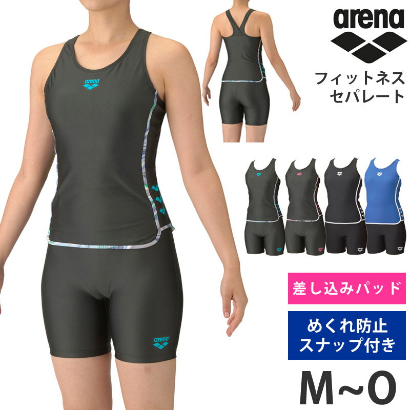 20%OFF 送料無料 arena アリーナ フィットネス水着 レディース めくれ防止 すらっとセパ フィットネス 水着 上下 ラン型 セパレート 上下セット 水泳 スイミング ジム プール おしゃれ グレー ブルー オレンジ ブラック AS5FWF46L M L O XO 返品交換不可