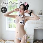 セクシーコスチューム 4点セット コスプレ 三角ブラ ショーツ ウシ 牛 ブラジャー ショーツ しっぽ 蝶ネクタイ リストバンド 女性下着 仮装 衣装