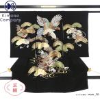 お宮参り 着物 男 正絹初着 男の子産着 祝着 鷹 扇 黒色 om-m-425 家紋入れ 五ツ紋無料、お守りフードセット、贈答用化粧箱、保存用たとう紙 プレゼント