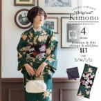 洗える着物 セット「袷着物:梅青緑+京袋帯:蔓いちご」KIMONOMACHI オリジナル 着物と帯の2点セット サイズS/M/L/LL コーディネート済み(メール便不可)