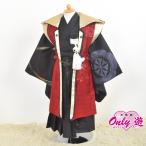 AA23-0450S/男児羽織袴セット/5歳/04-624IM/BLUE CROSS/信長/七五三レンタル/卒園式/男児AS/アンサンブル/赤/黒/陣羽織/織田信長/モダン柄