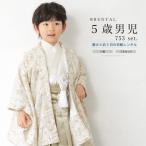七五三 フルセット レンタル 5歳 着物 羽織 男の子 袴セット ベージュ ゴールド ペイズリー 織り柄 和柄 レトロ モダン 往復送料無料