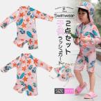 ラッシュガード キッズ 女の子 オールインワン 2点セット 水着 子供 ワンピース キッズジュニア 子供水着 長袖 ハーフパンツ 帽子 子供用 スイムキャップ 水遊び