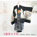 ★【レンタル】黒 / 七五三 羽織袴セット 色指定 おまかせレンタル 753 5歳用 13点 フルセット 着物 羽織 袴 七五三用 5歳 男児 男の子 レンタル着物