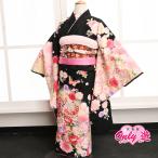 D21-0138K/五歳着物セット/レンタル/女の子/05-197MR/七五三/5歳/5歳着物/結び帯/はこせこセット/草履バックセット/絵羽柄/黒/着物レンタル/