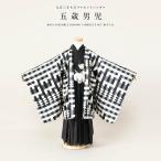 七五三 着物 レンタル 5歳 男の子 フルセット 袴セット 黒 ブラック 変わり紗綾形 格子 チェック 羽織 和服 和装 男児 往復送料無料
