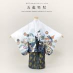 七五三 着物 レンタル 5歳 男の子 フルセット 袴セット 白 ホワイト 黒 鷹 熨斗 軍配 太鼓 羽織 和服 和装 男児 往復送料無料