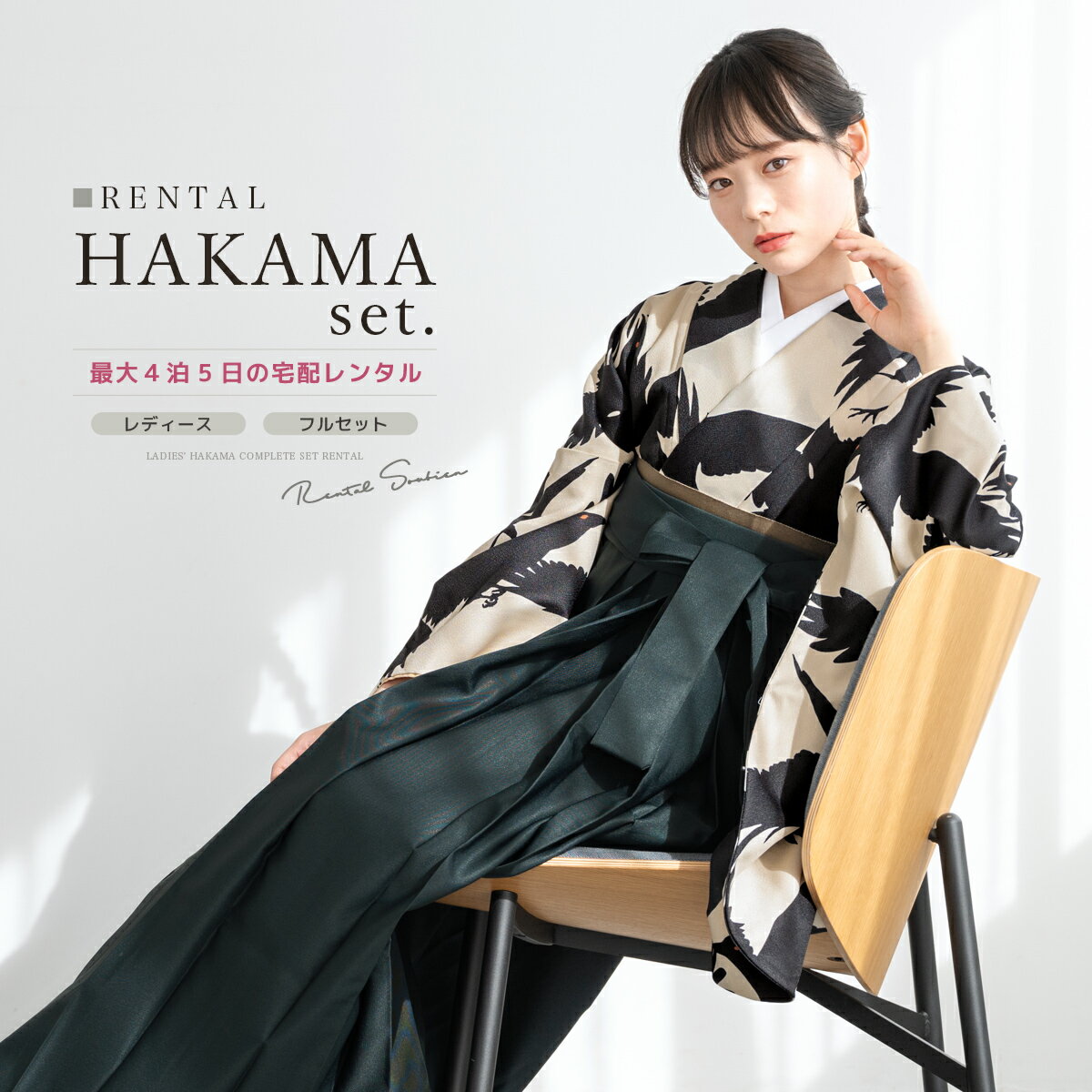 【12/1限定☆クーポンで10%OFF】【レンタル】袴セット 卒業式 袴 大学生 レディース フルセット 着物 ベージュ 黒 グリーン 烏 着物 襦袢 帯 着物セット 140 150 160 170 創美苑 身長145から175cm対応 往復送料無料