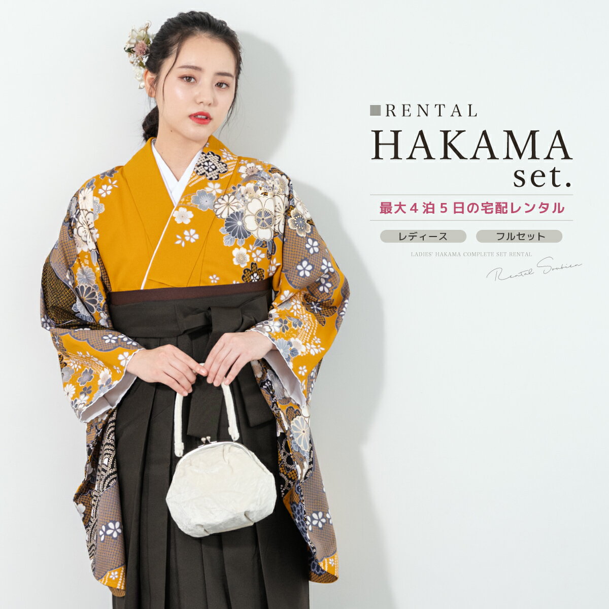 【12/1限定☆クーポンで10%OFF】【レンタル】袴セット 卒業式 袴 大学生 レディース フルセット 着物 ネイビー 黒 花柄 着物 襦袢 帯 着物セット 女 レディース袴 140 150 160 170 創美苑 身長145から175cm対応 往復送料無料