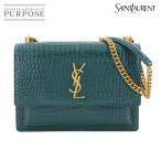 未使用 展示品 サンローラン SAINT LAURENT サンセット ミディアム チェーン ショルダー バッグ クロコ型押し レザー グリーン 90306080