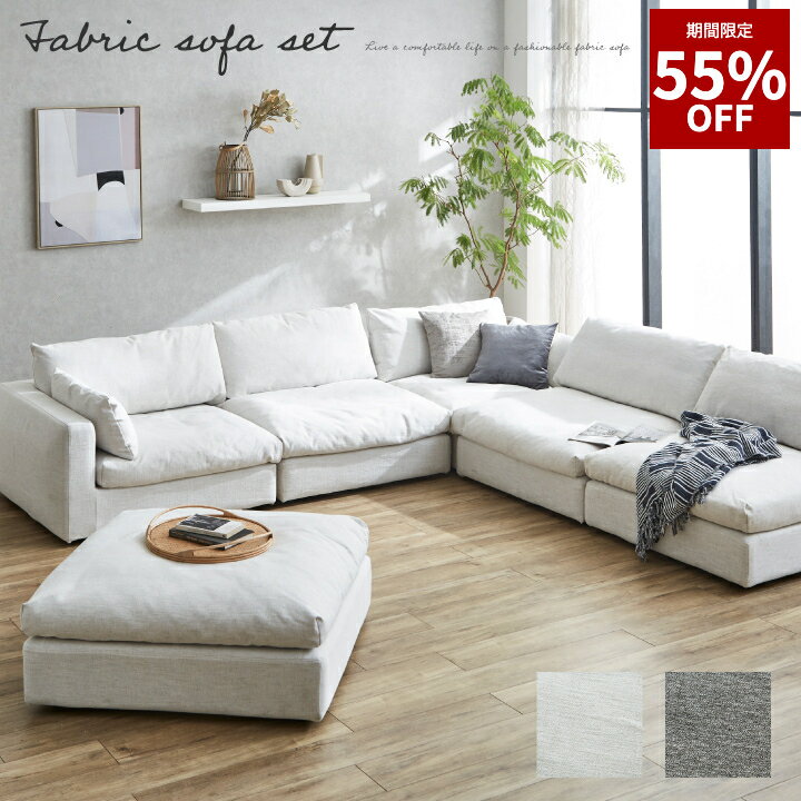 【55%OFF★12月4日20時〜11日2時迄】ソファーセット 5人掛け 6人 ソファ ソファー コーナーソファ 6点 布地 ファブリック 組み合わせ自由 クッション付き スツール 足置き 大型 リビング 北欧 モダン おしゃれ 送料無料 sanjp-0733