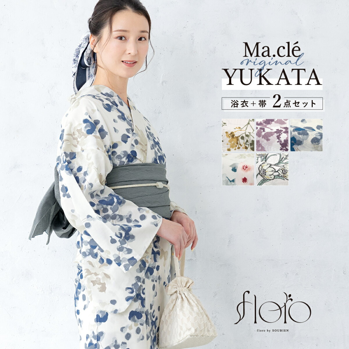 【クリアランス50%offクーポン】10/12~21浴衣 二部式 大人 レディース おしゃれ 可愛い 簡単 浴衣セット 兵児帯 2024新作 2点セット セパレート 白 青 黄色 紫 ピンク ベージュ 花 帯 夏 フリー 送料無料