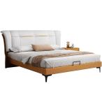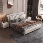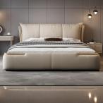 【並行輸入品】 DLCQIJI White Modern Minimalist Genuine Leather Wood Bed with Wi
