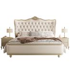 【並行輸入品】 DLCQIJI White Genuine Leather Wood Bed Upholstered Platform Bed