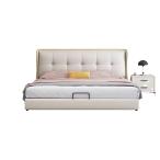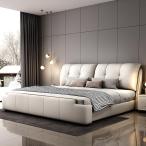 【並行輸入品】 HONGYISHI White Modern Queen Size Genuine Leather Bed Upholstere