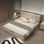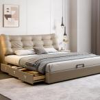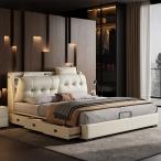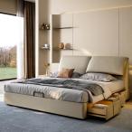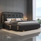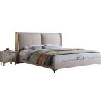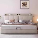 【並行輸入品】 LSIGHTUS Gray Luxury Genuine Leather Bed Storage Platform Bed Fr