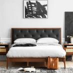 【並行輸入品】 LSIGHTUS Modern Queen Size Genuine Leather Wood Bed Upholstered