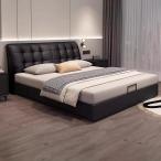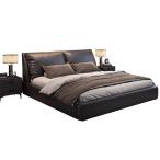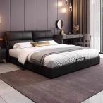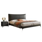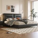 【並行輸入品】 HONGYISHI Black Genuine Leather Bed Set Upholstered Platform Bed
