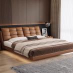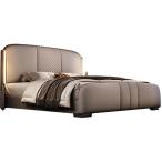 【並行輸入品】 LSIGHTUS Brown Genuine Leather Wood Bed Upholstered Platform Bed