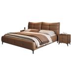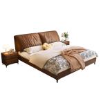 【並行輸入品】 DLCQIJI Brown Genuine Leather Wood Bed Upholstered Platform Bed