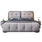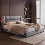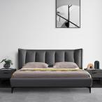 【並行輸入品】 LSIGHTUS Gray Genuine Leather Wood Bed Upholstered Platform Bed