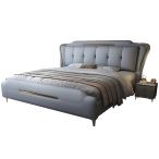 【並行輸入品】 HONGYISHI Gray Genuine Leather Wood Bed Upholstered Platform Bed