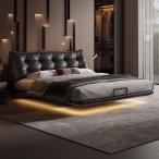 【並行輸入品】 LSIGHTUS Black Minimalist Genuine Leather Bed Set Upholstered Pl