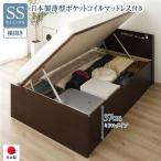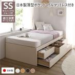 〔組立設置サービス付き〕 収納 ベッド ヘッドレス ショート丈 セミシングル 日本製薄型ポケットコイルマットレス付き 収納付き すのこ 日本製 送料無料