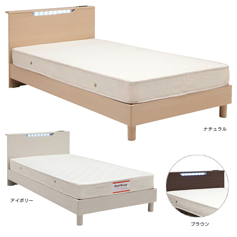 (タイムセール中) セミダブルベッド マットレス付き(ボンネルコイル) コンセント付き