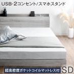ベッド マットレス付き セミダブル ベッドフレーム おしゃれ すのこ 木製 宮付き コンセント スマホスタンド USB セミダブルベッド
