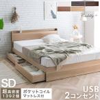 ベッド マットレス付き セミダブル 収納 ベッドフレーム おしゃれ ポケットコイル 収納ベッド すのこ 白 木製 宮付き コンセント スマホスタンド USB
