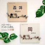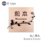 表札 ねこ アイアン風デコ B 正方形 タイル 戸建 おしゃれ ステンレス製 ( 取り付けキット付き )