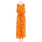 セリーヌ シルク フラワープリント ノースリーブ ジャンプスーツ ツナギ オレンジ 40【中古】