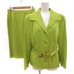 セリーヌ CELINE カラースーツ セットアップ テーラード オープンカラージャケット スカート ロゴ 金色ボタン 42 緑 グリーン /JS
