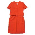 セリーヌ CELINE スカート スーツ 上下 セットアップ 半袖 ジャケット リネン レーヨン オレンジ 44 フランス製 ヴィンテージ レディース