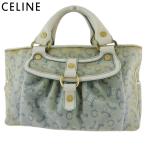 【週末タイムSALE★30%OFF】セリーヌ トートバッグ ハンドバッグ レディース ブギーバッグ Cマカダム ブルー ホワイト 白 ゴールド 中古