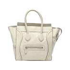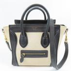 綺麗 CELINE セリーヌ ラゲージナノショッパー 2WAY 斜め掛けOK ハンドバッグ レザー キャンバス ホワイト【中古】