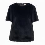 68b11【美品】CELINE セリーヌ フィービー期 アルパカウールブラウス ファーカットソー 半袖カットソー トップス 36サイズ ブラック レディース 女性用k02i