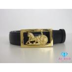 セリーヌ ベルト ゴールド 紺 ネイビー 65 メッキ レザー レディース マカダム 馬車 CELINE 【中古】bh2691