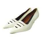 セリーヌ CELINE パンプス シューズ ローヒール ポインテッドトゥ レザー 36 23.0cm 白 ホワイト 0126 IBO87 レディース