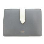 セリーヌ CELINE ミディアム ストラップ ウォレット 財布 二つ折り レザー バイカラー グレー ホワイト /UO ☆AA★ レディース
